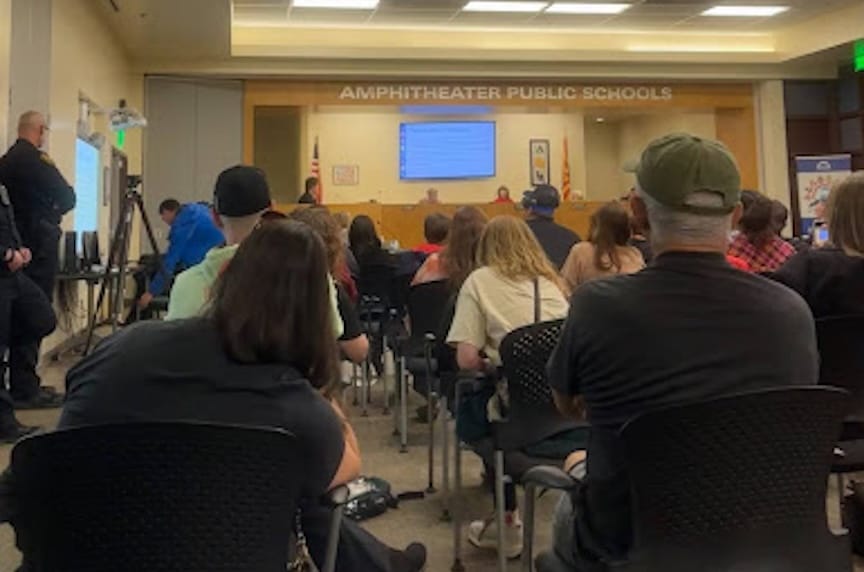 Hundreds of community members packed a recent Amphitheater Unified School District Governing Board meeting, filling the seats and lining the walls. Many attendees were there to support trans youth, listening closely as they waited for their chance to speak.