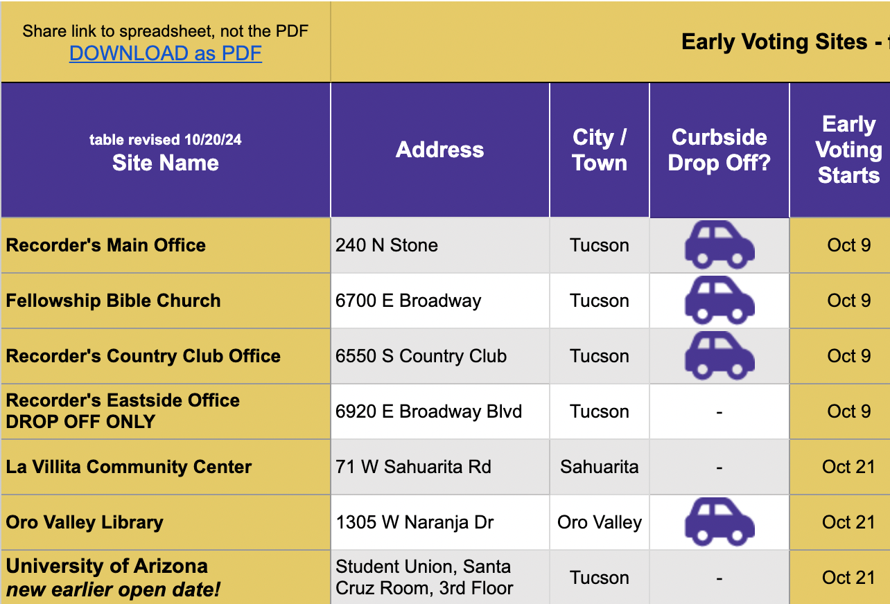 If you use a provisional ballot at an Early Voting site, you can check its status here. If its status doesn’t change, the recorder’s office found that for some reason, you weren’t eligible to vote. You can find the status or ask about a disqualification by calling 520-724-4330.