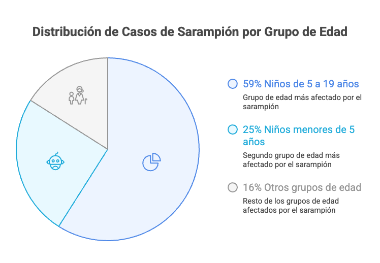Los niños de 5 a 19 años representan el 59% de los casos, seguidos de los menores de 5 años, que representan el 25%.