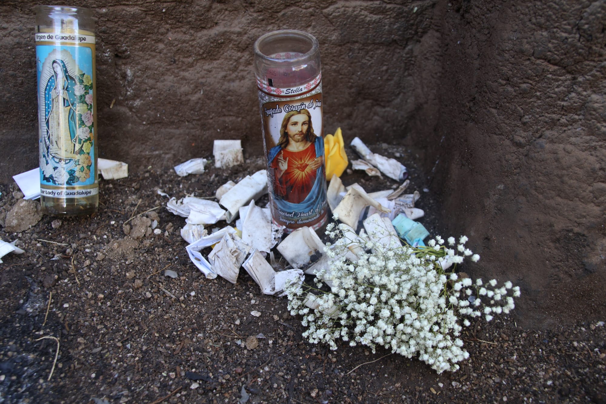 “Cada vez que voy al santuario, es diferente,” dijo Trejo. “He visto platos de comida, cenas precocinadas, peluches, mecedoras, camiones Tonka, santos y estatuas, pinturas y ropa dejada en el santuario. Nunca se ve igual.”