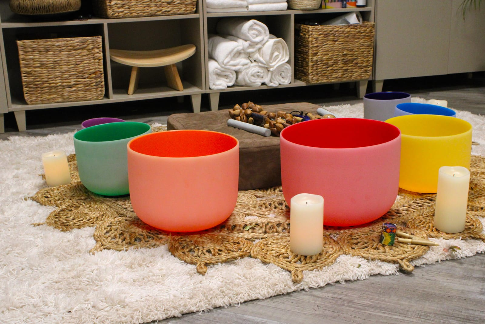 Sus sesiones de meditación incluyen percusión, un sonido que, según ella, “nos transporta al útero y nos infunde calma.” También ofrece sanación sonora, utilizando cuencos y una varilla o palo para crear vibraciones que promueven la relajación y la liberación emocional.