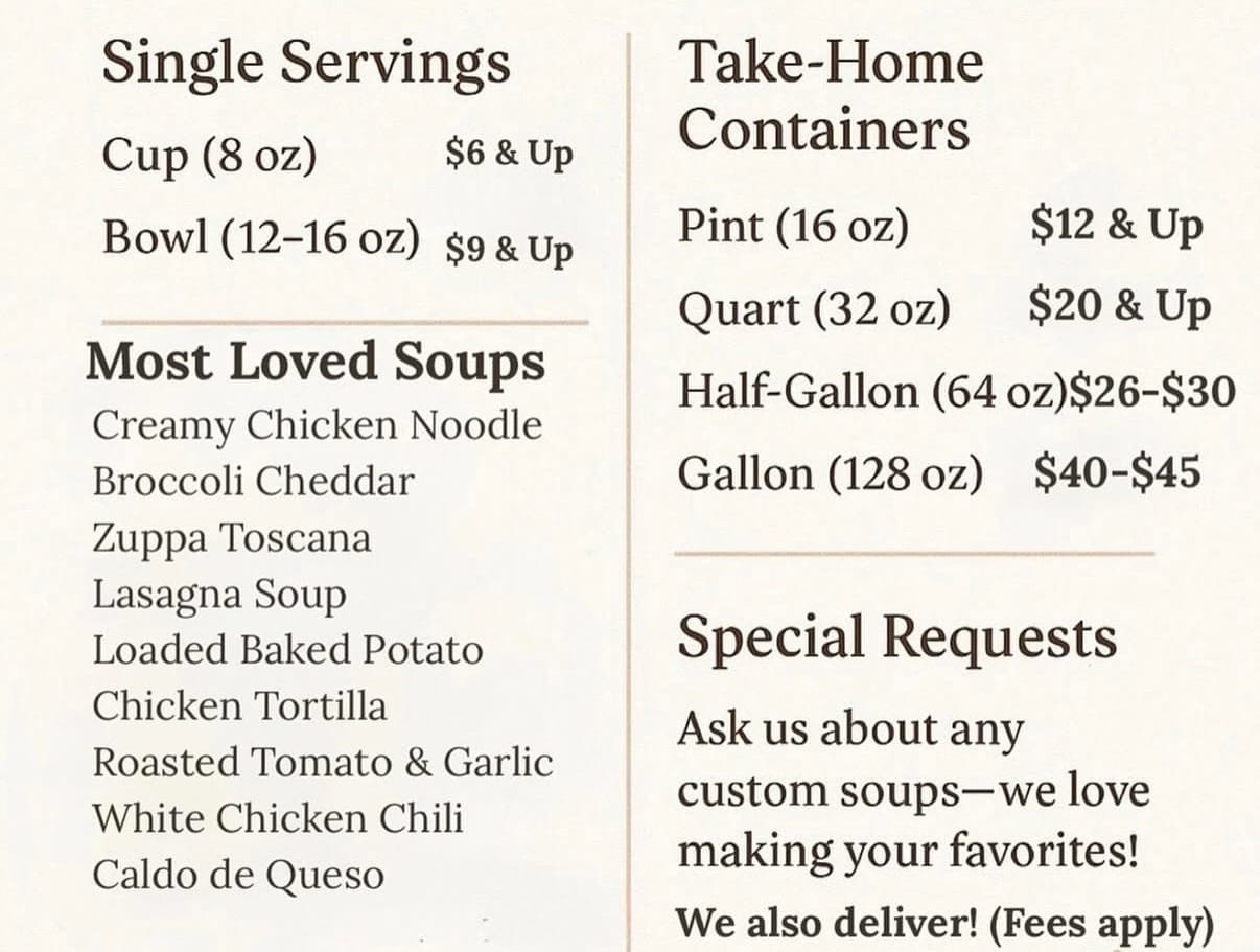 “There’s not (a lot of places) besides Panera Bread locally that sell soups,” she said. “And that’s what you need when you get sick. So you have a sick friend and you’re like, ‘OK, I can’t make soup and I don’t have the time, but I’m going to order you something homemade.’”