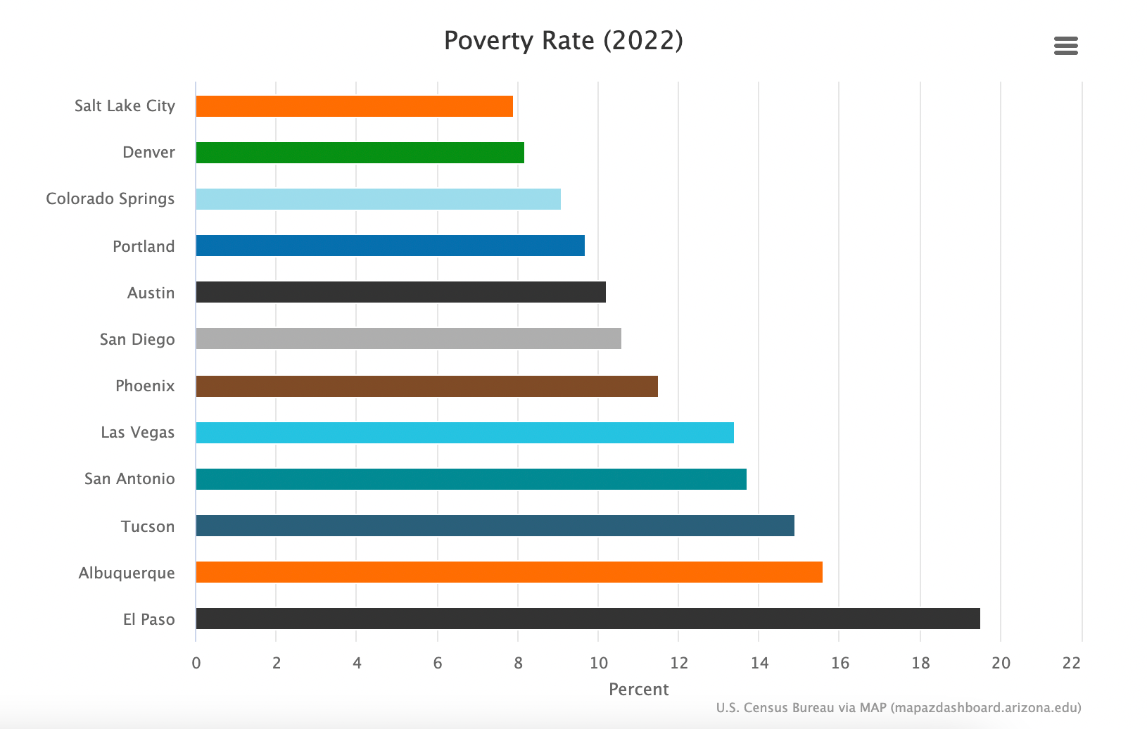 South Tucson’s poverty level is 51%, a stark contrast to Tucson’s 14.9%, with poverty rates serving as an indicator of financial distress among households. These rates can also help drive government decisions related to spending when it comes to programs like affordable housing and other forms of public assistance, according to the University of Arizona’s Making Action Possible study.