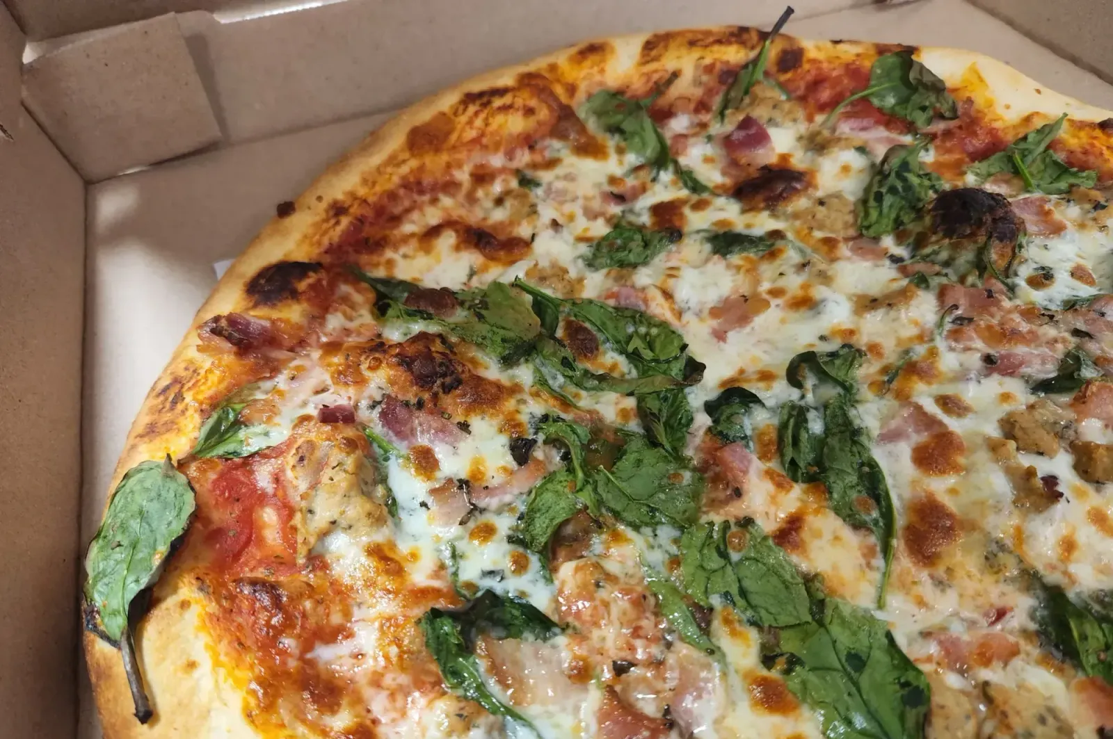 “No usamos horno de leña, ni carbón, ni cinta transportadora. Tenemos un horno de acero, pero no es una fermentación típica de 24 horas,” dijo. “Es una pizza al estilo neoyorquino en cuanto a su apariencia y sabor, pero es napolitana en cuanto a la textura, la estructura y la fermentación.”