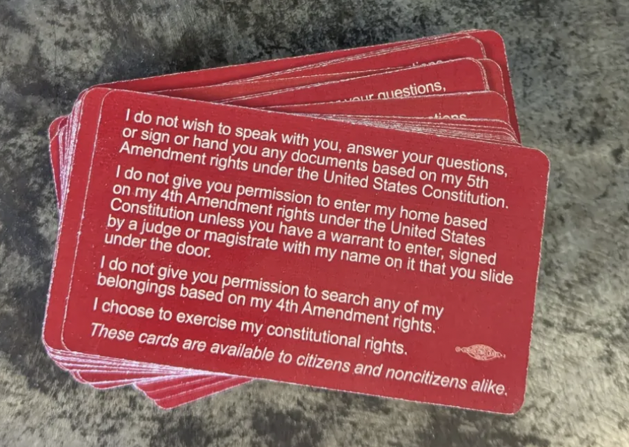 Todos los participantes recibieron una tarjeta roja de doble cara que enumeraba los derechos constitucionales del portador de la tarjeta y consejos sobre qué hacer al enfrentarse con un agente. Rivera dijo que ejercer los derechos durante este tipo de encuentros es clave.