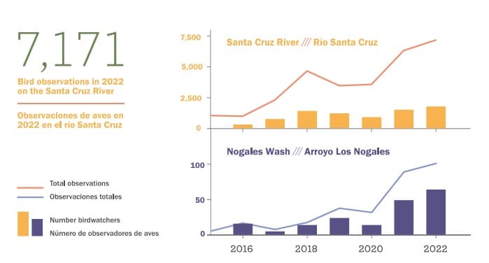 El proyecto de Irvington utiliza agua purificada del Proyecto de Remediación del Aeropuerto Internacional de Tucson para sustentar un hábitat ribereño, y Kmiec dice que ambos esfuerzos han tenido un gran impacto en la vida silvestre local y se han convertido en lugares populares para la observación de aves.