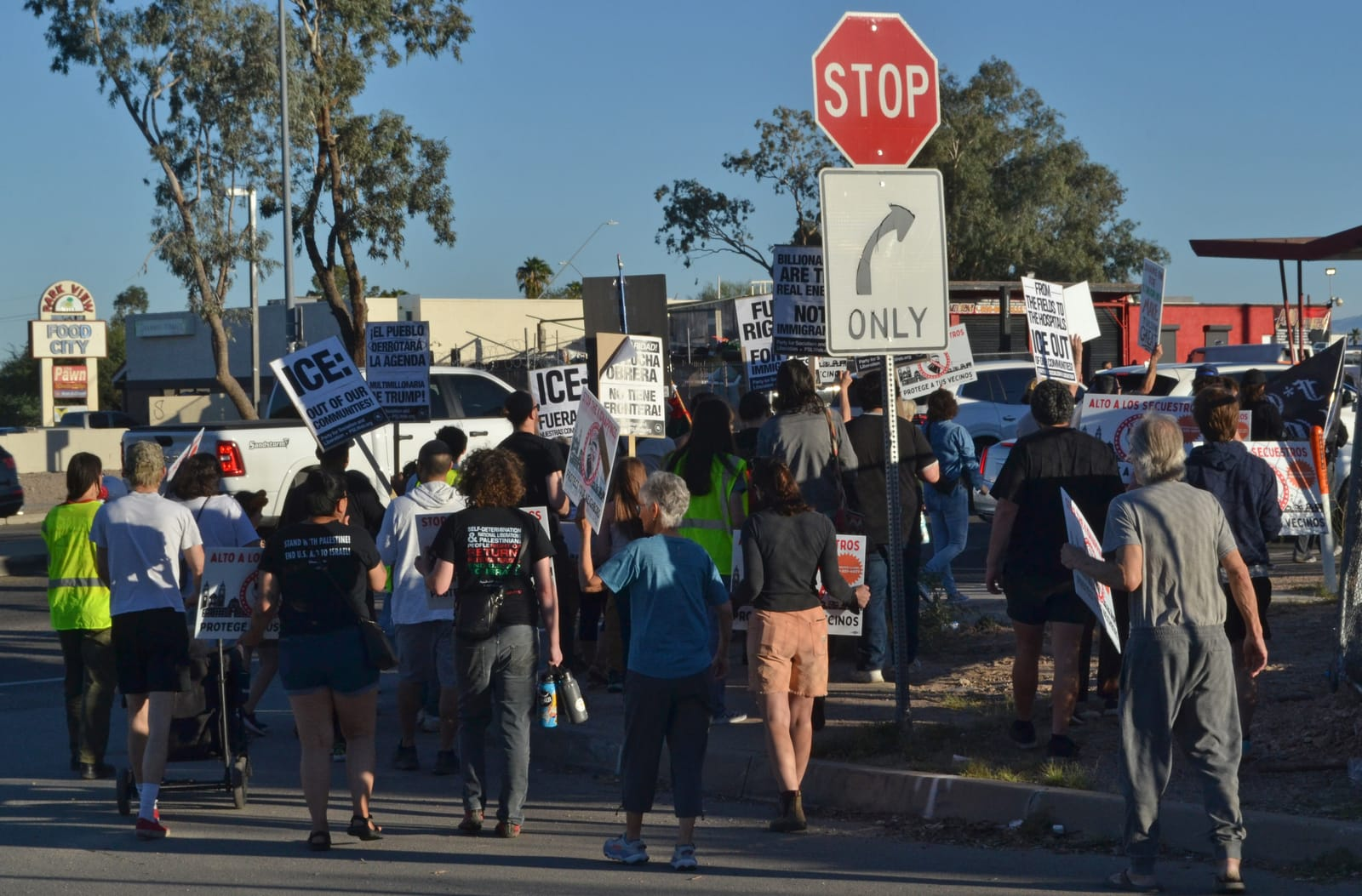 Más de 50 manifestantes marcharon hacia una instalación de la Patrulla Fronteriza en el sur de Tucson, expresando su preocupación de que allí se almacenen vehículos del ICE sin identificación y exigiendo mayor transparencia en la aplicación de las leyes de inmigración.
