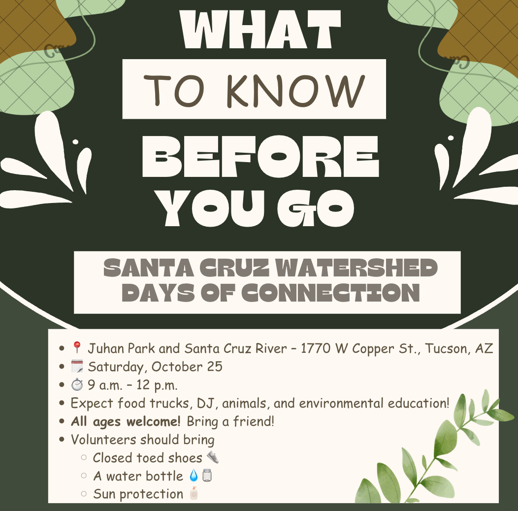 Hundreds of Tucson residents are expected to gather Saturday, Oct. 25, for the Santa Cruz Watershed Day of Connection, a community cleanup and celebration along the Santa Cruz River.