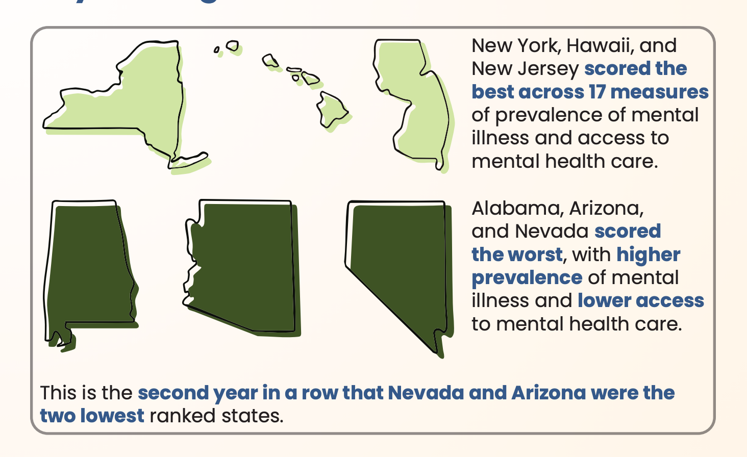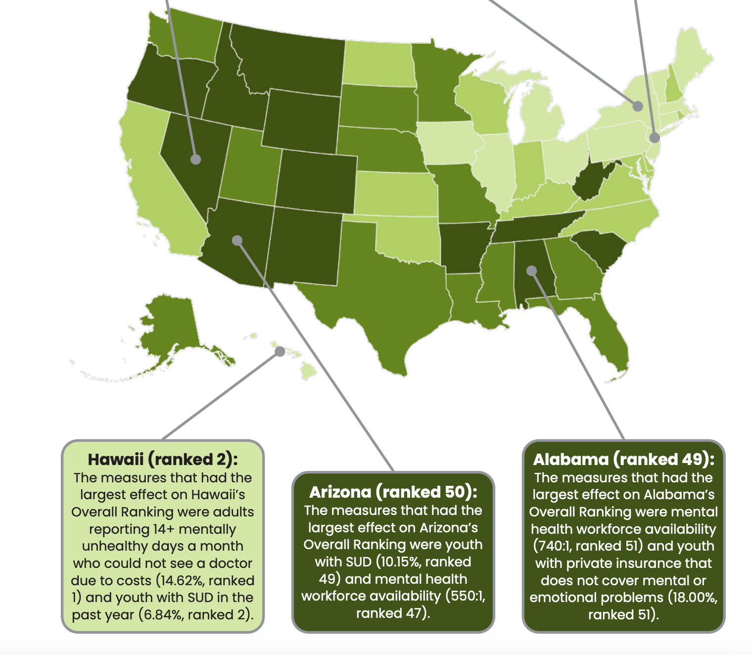 The report analyzed states based on 17 factors, including mental illness, substance use disorder, suicidal ideation, and access to and coverage of care.