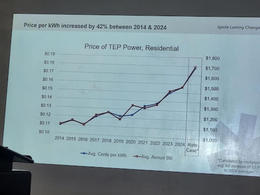 “Regardless of what the presentation was about, I think the folks that were in attendance want to see a lower rate, and I think that entails action at every level that supports our residents and really living within the costs of our own needs,” Ward 5 Councilman Rocque Perez told Tucson Spotlight. “Right now, what we see at TEP doesn’t allow for that.”