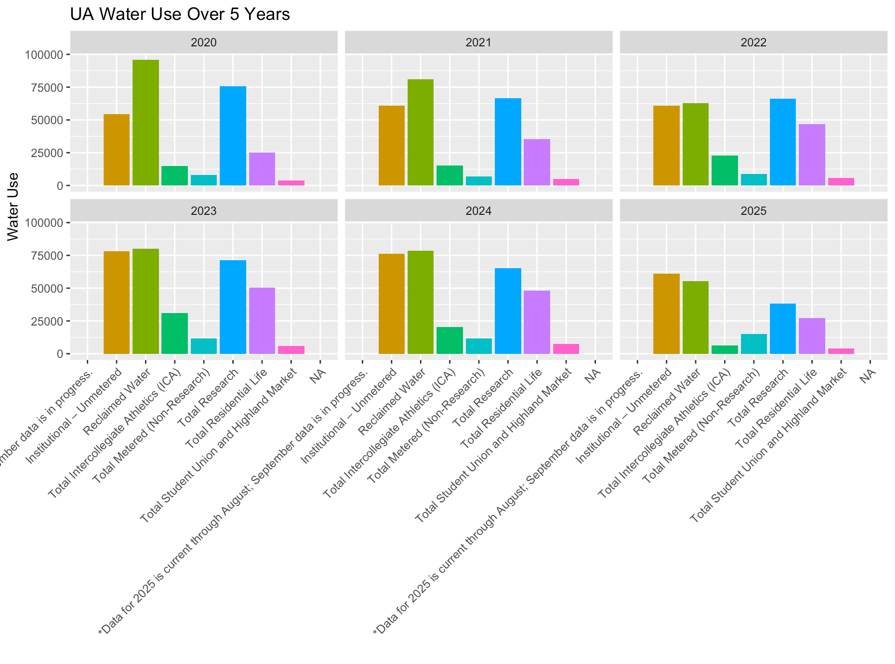 Total water usage fluctuated over time but dropped significantly between 2018 and 2023, according to UA data.
