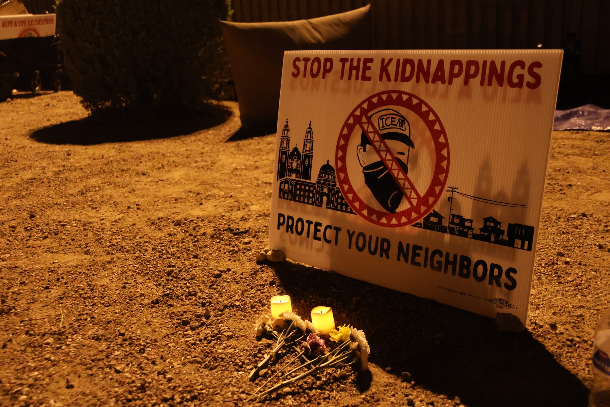 Illuminated by candles and surrounded by flowers and protest signs, participants remembered those who have died in custody and demanded humane treatment for those still detained.