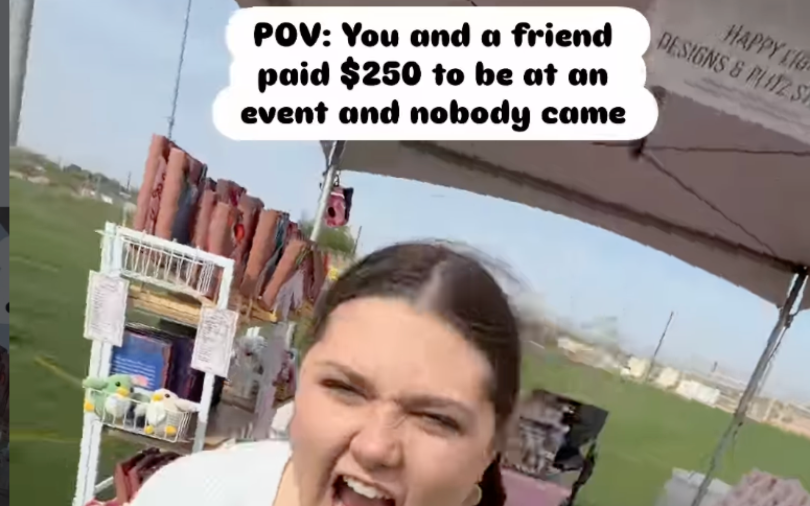 "It was honestly so unsafe to set up anything," Aralexie said in her reel. "Multiple vendors had all of their stuff blown away, I had a cake fly off my mini fridge."