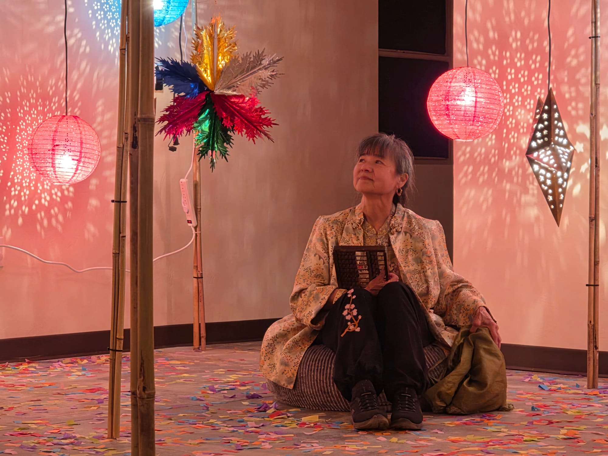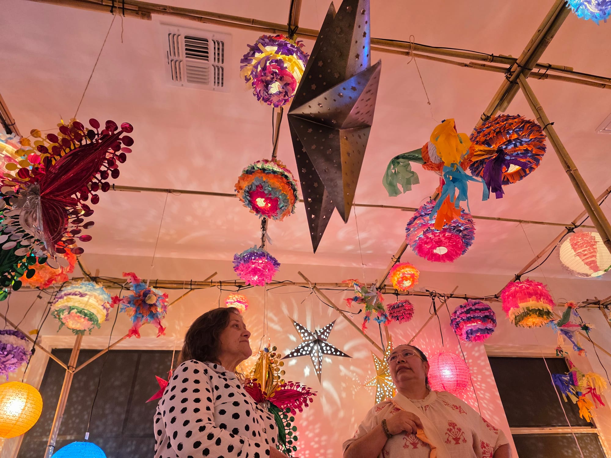 The smaller building invited guests to sit and reflect on what brings them joy, with an embroidered mat at the center bearing community members' wishes for La Doce: "a safe hub," "unity" and "love."