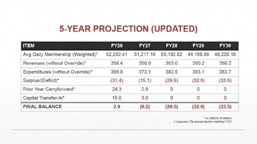 El distrito fue señalado por el estado como uno de los nueve con mayor riesgo financiero. Si bien actualmente no se encuentra imposibilitado para pagar sus facturas ni al borde de la insolvencia, los funcionarios afirmaron que las decisiones que se tomen ahora podrían determinar si el distrito logra evitar la intervención judicial en el futuro.