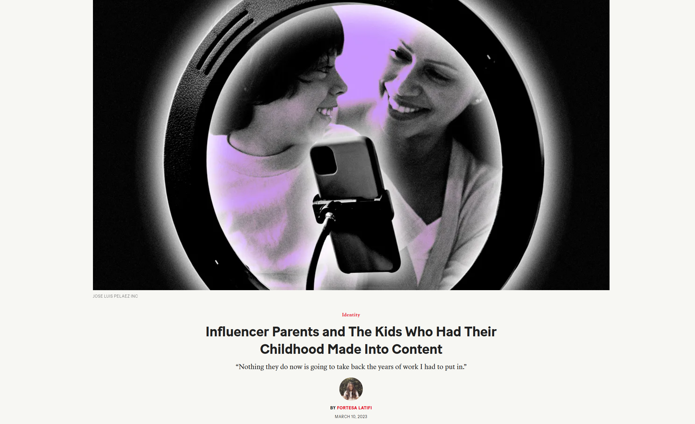Latifi's hesitation shifted when a three-part series she wrote for Cosmopolitan went viral. The stories explored why family vloggers do what they do, why some families leave the vlogger life, and what child influencers have to say about the lack of regulation to ensure they receive payment for their work.