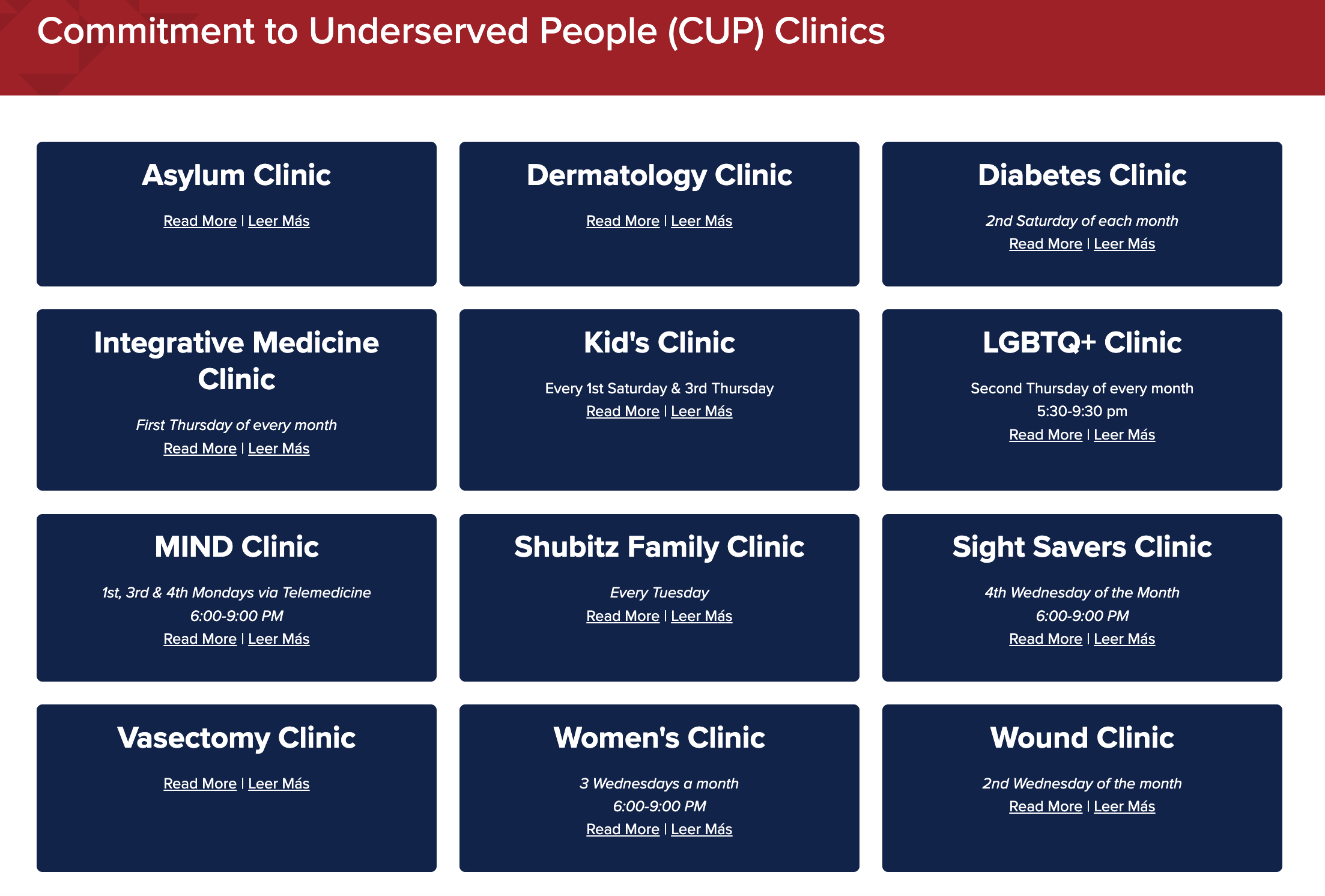 "After working with CUP for 20 years, I have seen how students grow in their skills and empathy because of this program and the clinics in particular. They hone in on different underserved issues to create new programs," said senior program coordinator Hildi Williams. "We also had students start a clinic at the Islamic Community Center, because that was an unmet need for that population."