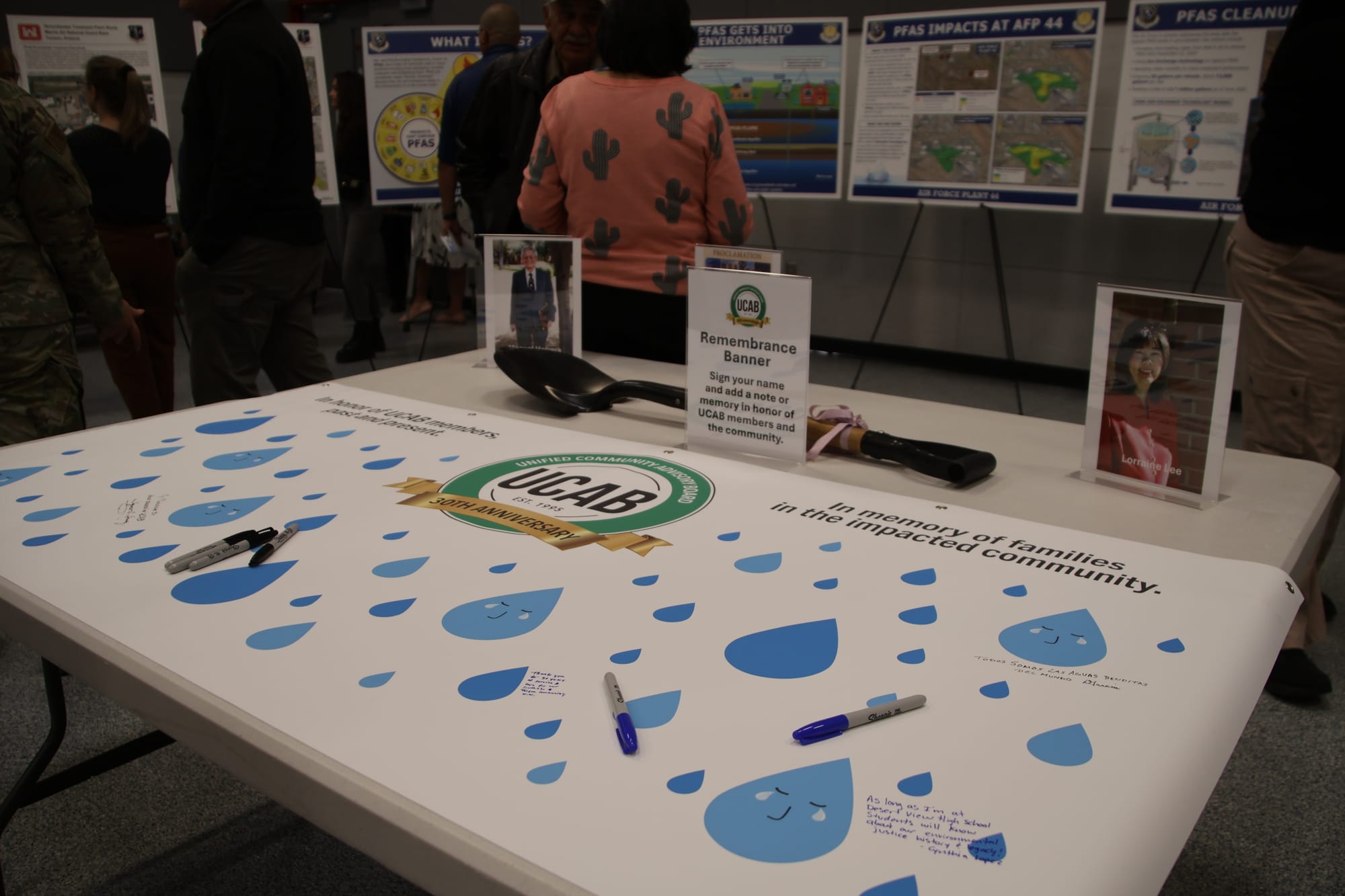Attendees were invited to write messages on a banner commemorating Herrera Jr., Lee and community members who lost their lives as a result of water contamination. The banner will be hung above the archives at the Valencia Public Library.