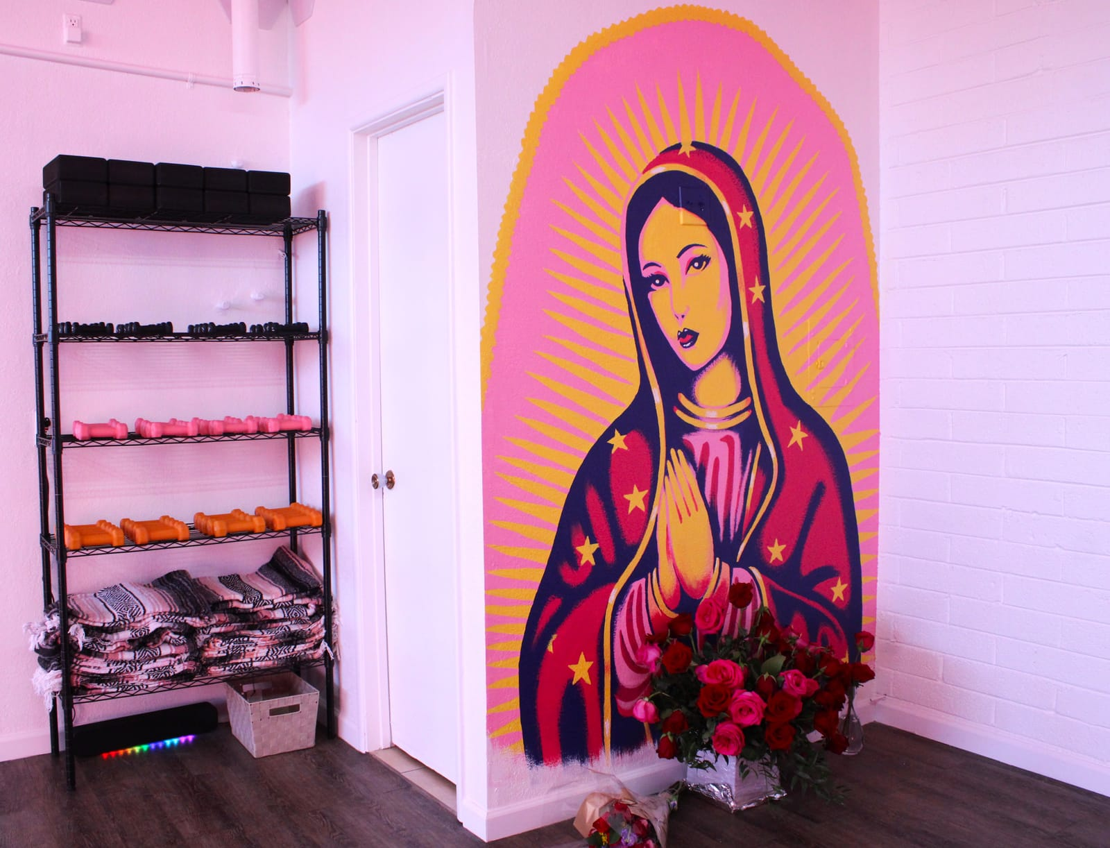 Vizcarra inauguró Studio Fuerza el mes pasado en la South 12th Avenue. Su letrero rosa y amarillo sirve como faro en la transitada calle. En el interior, un mural de la Virgen de Guadalupe da la bienvenida a los visitantes, lo que infunde positividad e inclusión en la comunidad.
